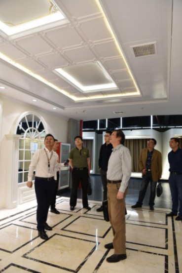 张副主席一行在浙江今顶集成吊顶董事长兼总经理周建成和副总经理华伟的陪同下,先后参观今顶集成吊顶厂区、生产线以及展厅,对今顶集成吊顶花园式厂区和先进生产技术表示高度肯定,特别是公司耗资百万搭建的现代化展厅,包括VR未来体验区、生活家展厅以及自主研发的智能集成吊顶系统,以其体验方式简洁流畅、外观新颖美好、品质精湛稳定,形成的独具风格的产品风格得到了来访贵宾的一致好评。