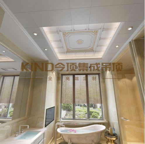 摆脱厨卫吊顶只有平铺的刻板印象, 在最能放松自己的一方天地里,所有细节都要完美到无可挑剔,包括几平米的顶面设计。将“金粉世家”镶嵌其中,留下简单的线条和几何图案,灯带辅助照明,实用、光线、细节、舒适一个都不少。从容不迫地演绎独特美感和轻奢理念。