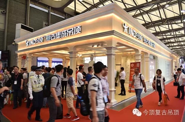 2015年6月,今顶以“复古盛宴,财富共享”的参展主题亮相第20届中国(上海)国际厨房、卫浴设施展览会。纯正欧式复古风格的展厅,超过350平米超大展出规模、底蕴深厚的产品设计、尖端智能的科技以近百名意向客户现场签约的成绩位列上海厨卫展集成吊顶行业的“领头羊”宝座。