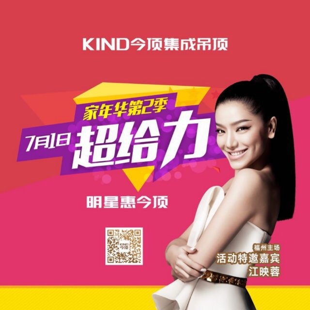 期待7月1日的今顶集成吊顶(Kind Integrated Ceiling )“超给力 家年华”全国大促,期待今顶携手江映蓉带给我们更多的惊喜!