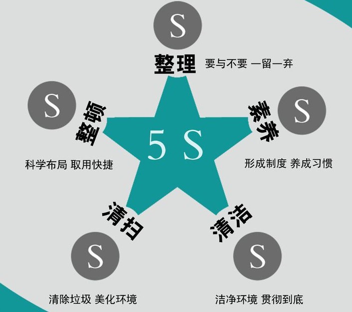 5.素养(SHITSUKE):每位成员养成良好的习惯,并遵守规则做事。培养主动积极的精神。