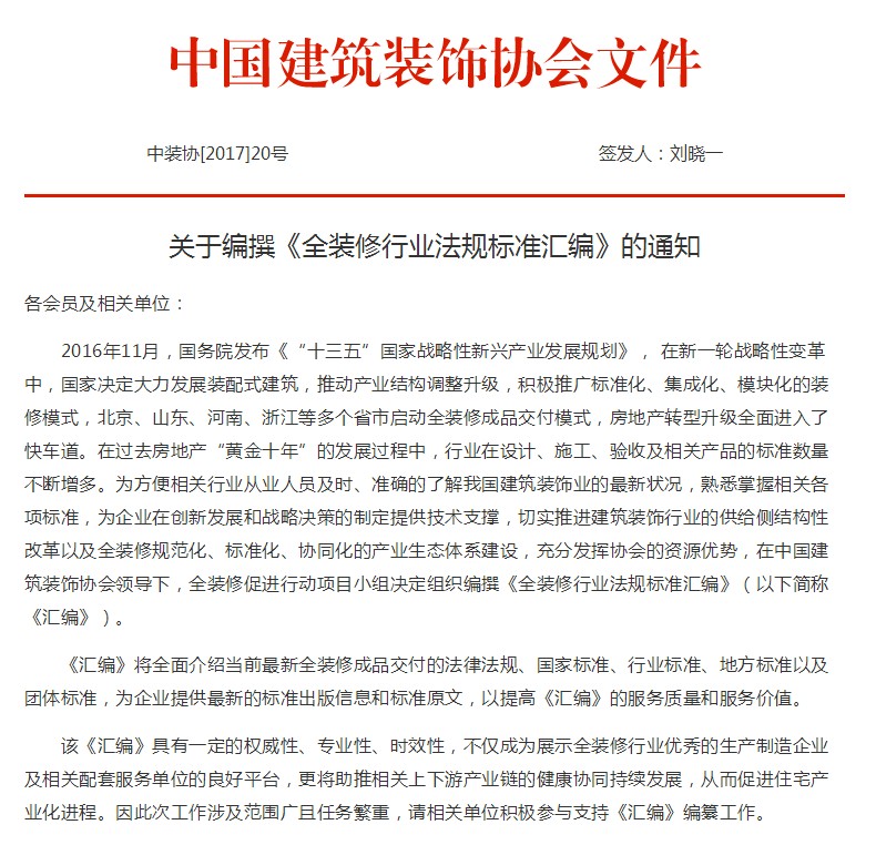 《全装修行业法规标准汇编》的出版将进一步助推相关上下游产业链的健康、协与持续发展,从而促进住宅产业化进程,为行业发展服务、企业服务提供有益尝试。今顶日后也将以身作则,继续为行业健康发展提供技术规范支撑,为消费者提供更优质实惠的产品与服务——