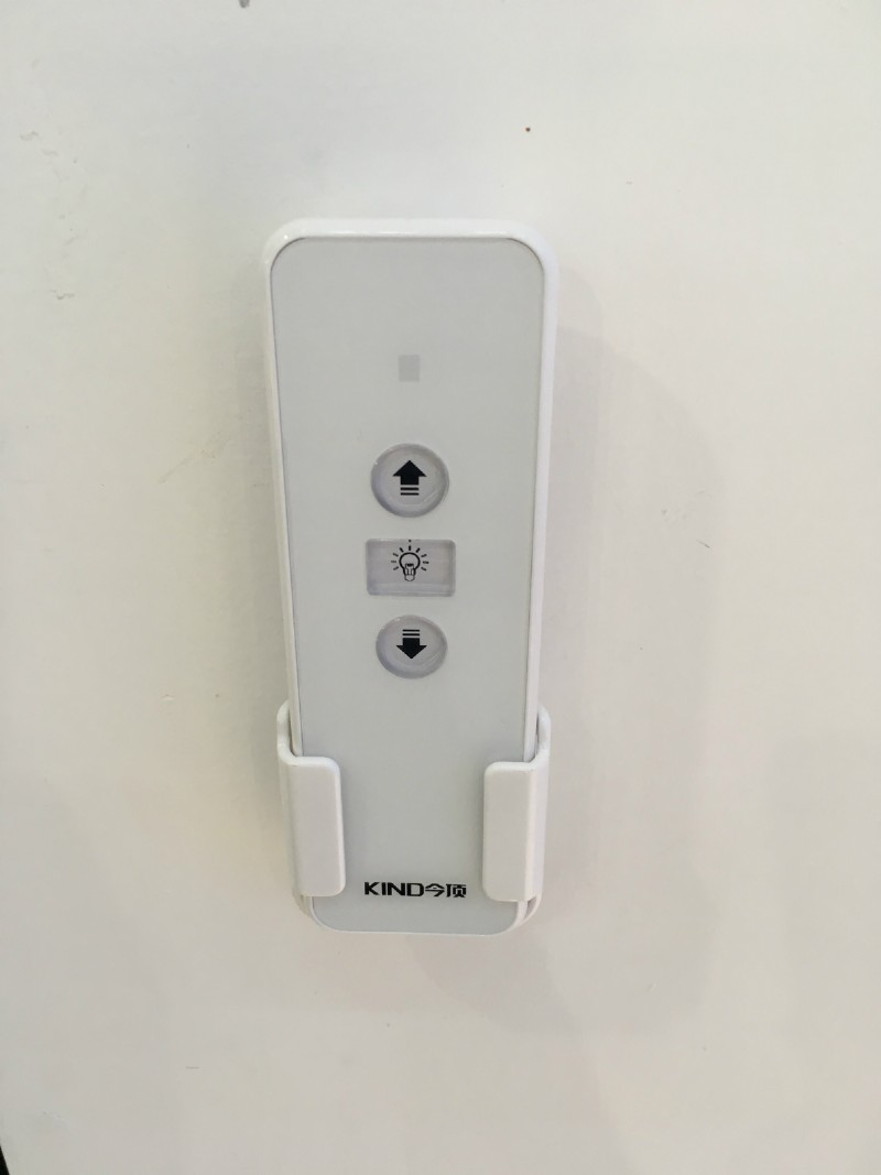 白色水晶面板遥控器,可以安装在墙上,也可以随时手拿遥控,3个控制按键便于操作,分别对应“上升、照明、下降”功能。遥控器内置电池,湿手触摸也不会有危险,可实现无障碍20米远距离无线遥控,随心控制所有晾晒功能。