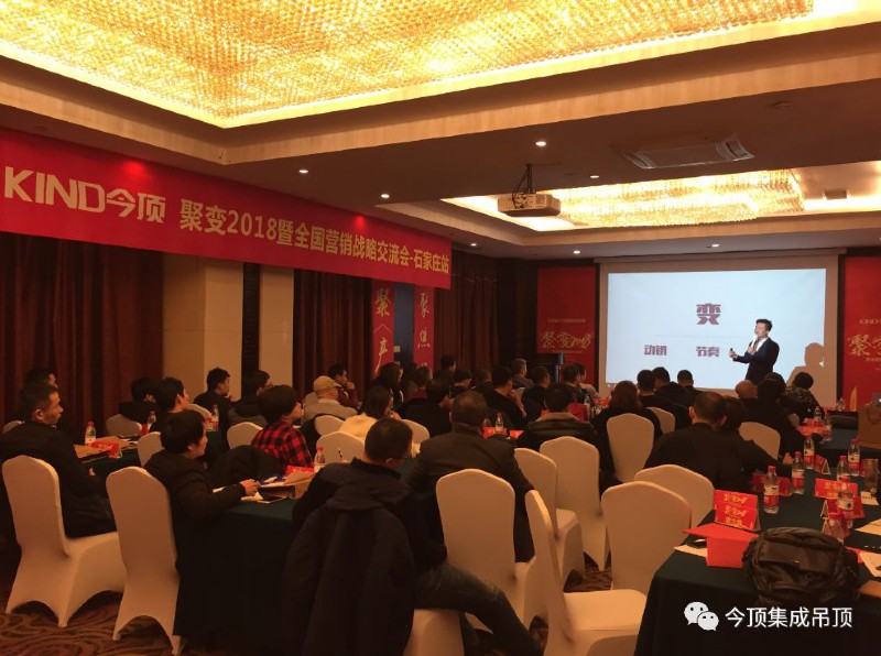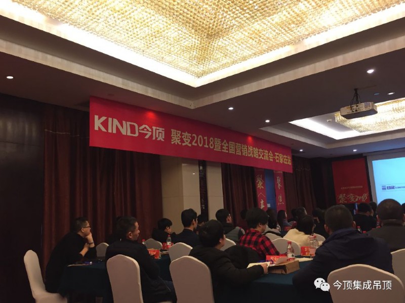 2018年1月22日—23日,今顶在石家庄京州国际酒店胜利进行了第一场“聚·变2018”全国营销战略交流会,今顶的营销精英们汇集一堂,总结2017年的市场营销工作,分析建材家居市场变化及集成吊顶行业市场形势,规划并部署来年的工作。