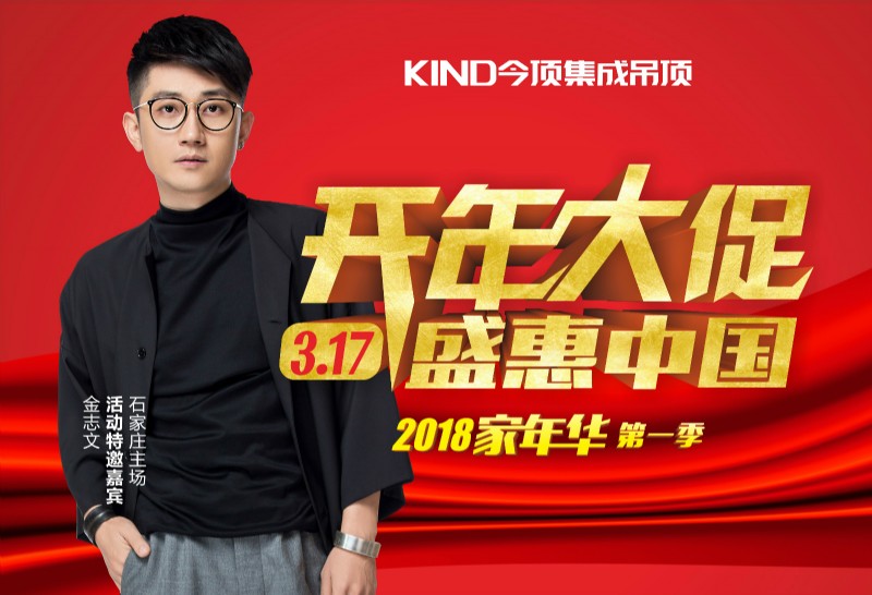以此为标准,今顶集成吊顶最终选择了金志文作为今顶2018家年华全国大促第一季的开年助阵嘉宾——