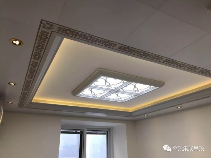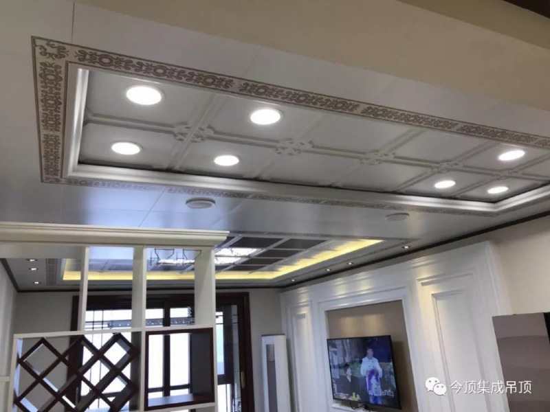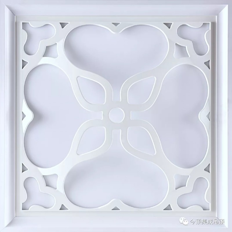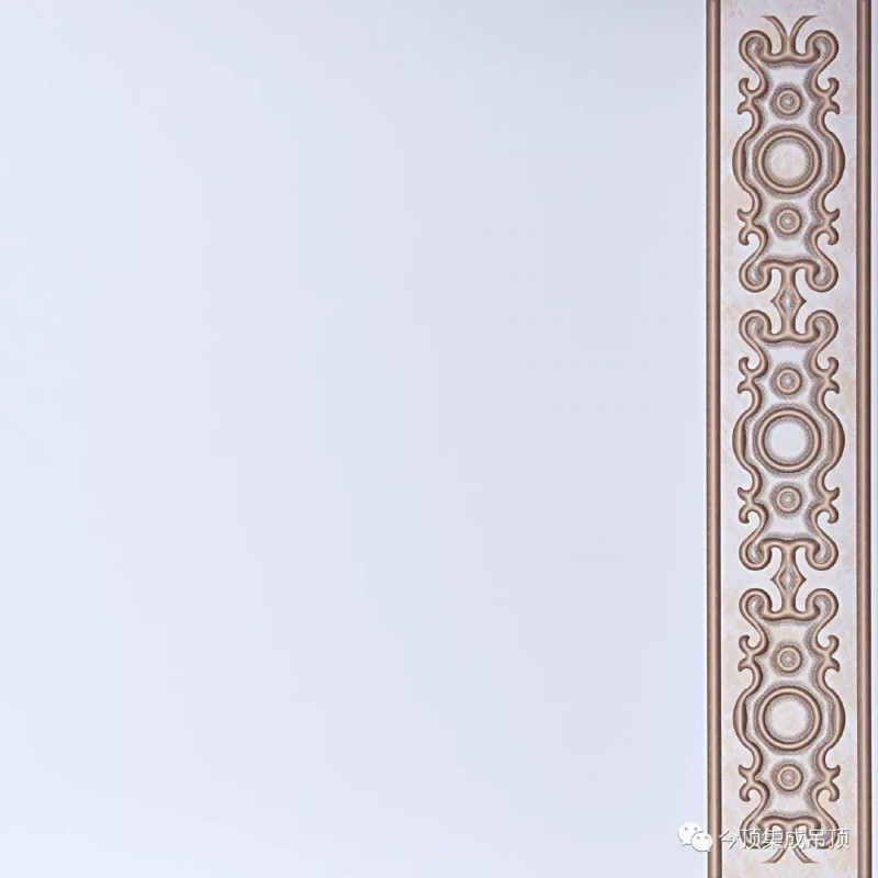 485*485mm规格,迎合全屋吊顶趋势,打造出开阔的视觉空间感。深度着色丝印工艺与立体凹凸压纹技术,令每一块扣板呈现出别致的镌刻效果,让顶面色彩层次分明。