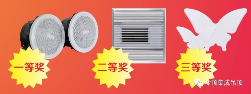 活动期间下单客户即可参与616新品聚惠金蛋有礼活动,100000000%中奖,今顶蓝牙音箱、厨房凉霸、蝶恋情景照明灯等更多好礼……等你来拿!(部分城市有所差异,具体以当地今顶集成吊顶专卖店公布为准)