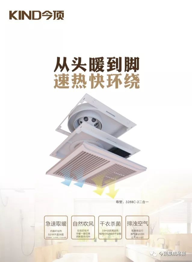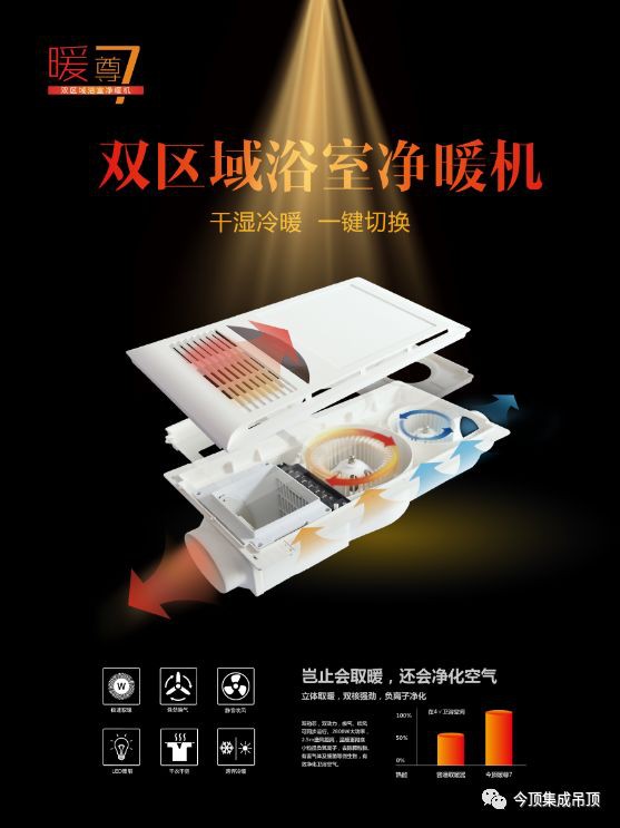 暖身:将取暖、换气、空气清新、氛围照明、干燥、自然凉风等多项功能高度集成在一台机器内,开启智能型多功能浴室取暖新时代!