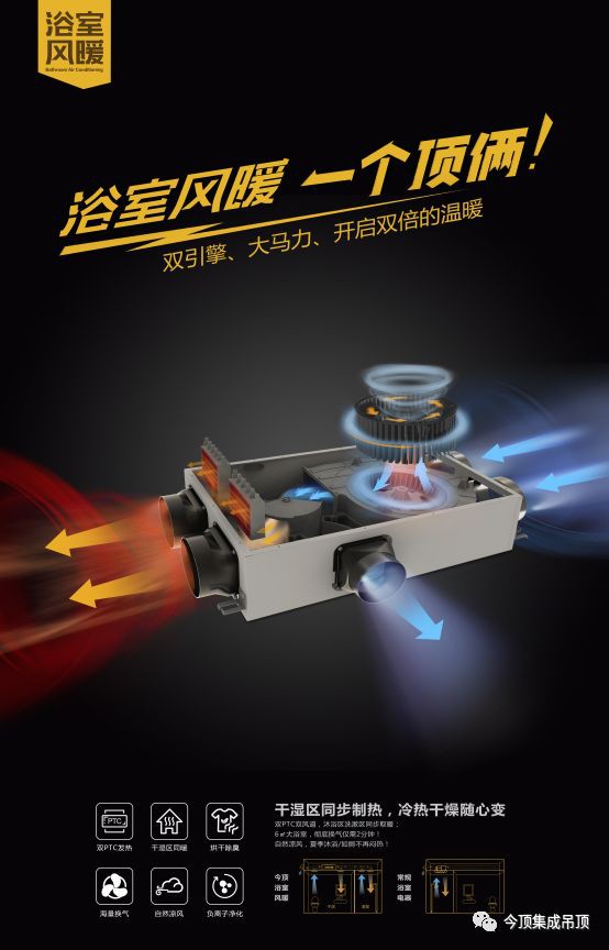 浴室风暖:双引擎大马力,取暖一个顶俩!