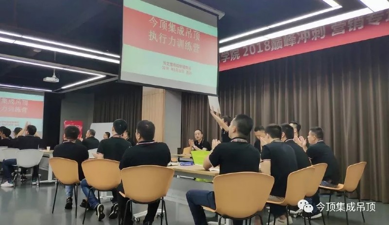 今顶作为集成吊顶行业的领先品牌,自创立以来就一直坚持知行合一,主动并抢先于时代发展。此次特训营,也绝不仅是为了维持营销精英们的热情,而是站在更为长远的角度,以培养人才的方式发展企业,真正落实”决心、目标、方案、资源“八字方针,上下一心,共同进步,方能推动企业更好更快发展。