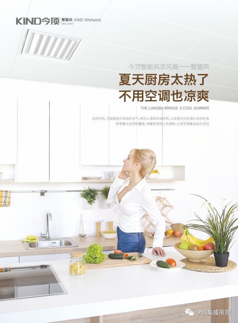 3、垂直送风更安全:智旋风安装在集成吊顶上,风从头顶垂直送出,炒菜时就不用担心灶火会熄灭啦!