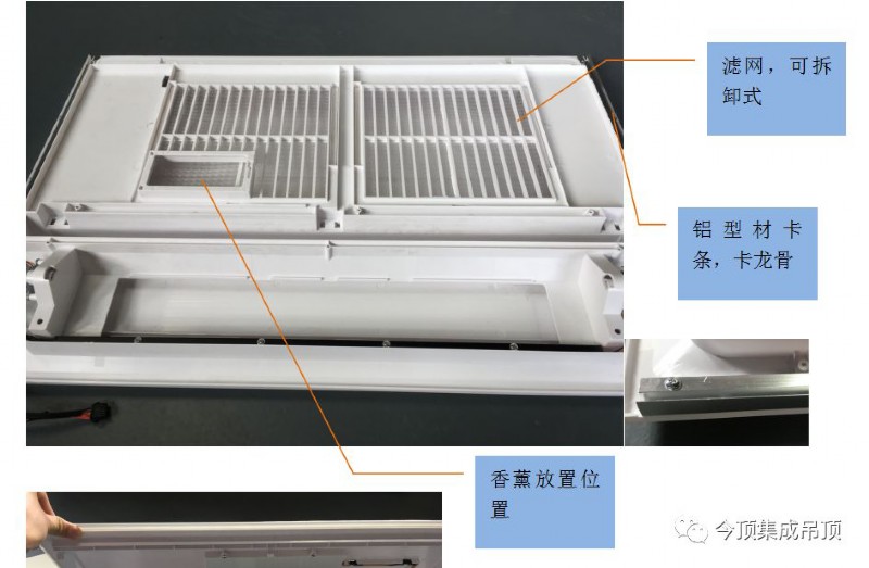 面板:打开面板,我们能看到可拆卸式过滤网以及香薰装置位置;