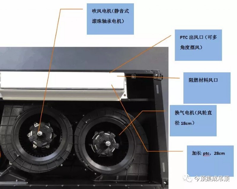 箱体:从正面看,能看到吹风电机、换气电机以及PTC出风口;