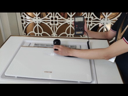 小编在智臻出风口前方5cm的位置放置了测风速的仪器,由动图可见,风速很快就上升到了6.5m/s!而在我们开启高风速换气时,智臻最高风速可达10m/s,实现210m³/h换气量,快速置换浴室湿气。