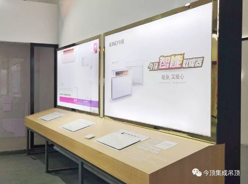 走进展厅,你会发现,这里分区展示着今顶集成吊顶、集成墙面、智能家居“三业合一”之下的各色产品,其中既有智能晾衣机、暖尊7、天圆地方等经典热销的板材、电器,也有2018春夏新品智臻智能取暖器、至简系列板材——