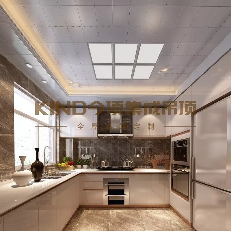 厨房的吊顶也是一个大问题,一般厨房油烟比较大,建议还是使用铝板扣板材质的吊顶,这样比较好打理,乳胶漆之类的吊顶还是不要考虑了!现在,集成吊顶已成为卫生间、厨房吊顶的绝对主流,甚至是全屋的主流。