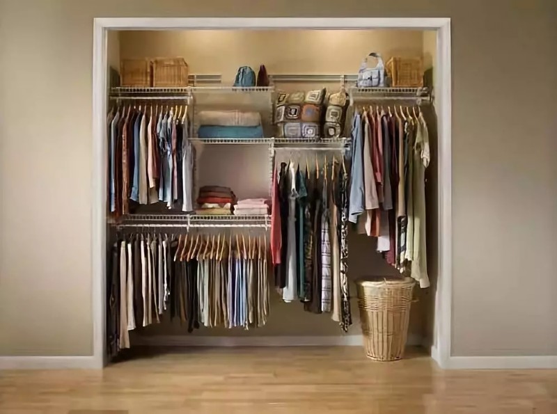 嵌入式衣帽间面积不必很大,可以利用搁板、抽屉等存放大量衣物。