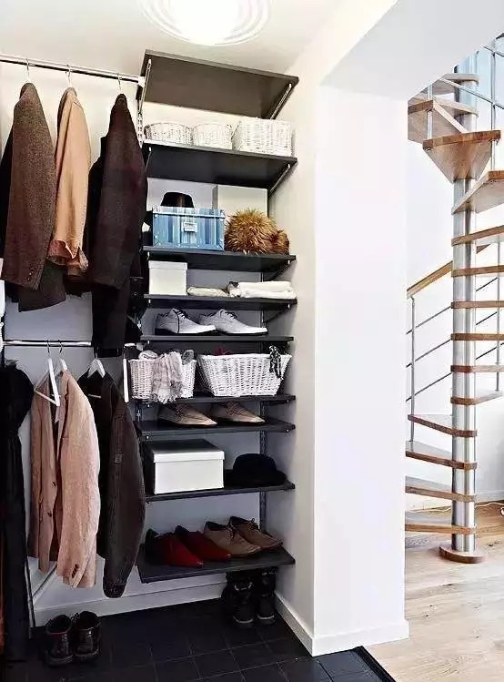 如果想要在家里装一个嵌入式的衣柜,能把家里利用起来的角用起来就最好不过了,挂个帘子,后者装个门,就可以当衣帽间了,起码可以收纳相当一部分的衣服呢。