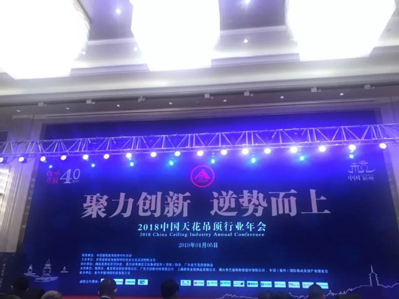 2019年1月5日,以“聚力创新 逆势而上”为主题的2018年中国天花吊顶行业年会在浙江广电开元名都大酒店隆重召开。行业协会及企业代表汇聚一堂,共同探讨行业创新发展之道,期待在2019年开启行业全新篇章。