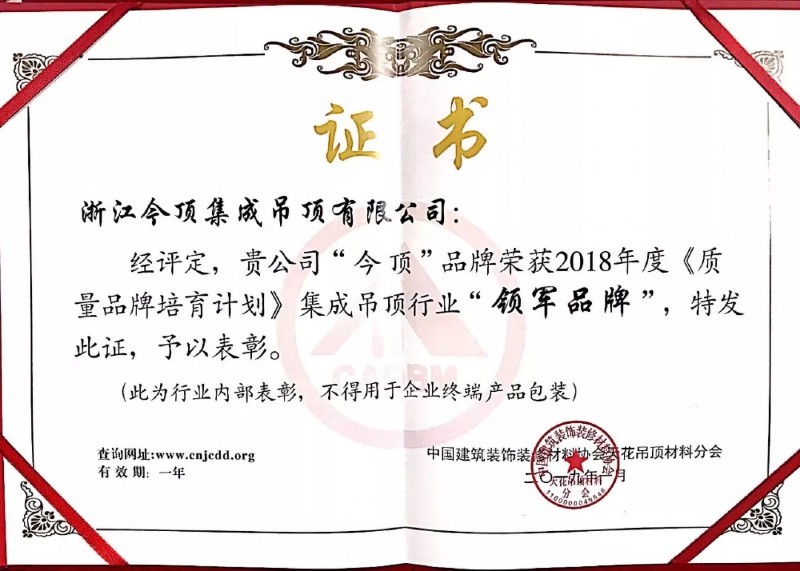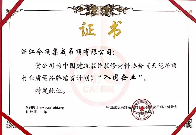 在本次会议上公布了中国建筑装饰装修材料协会天花吊顶行业质量品牌培育计划入围企业名单。今顶作为行业领导者,携手其他数十家品牌影响力居于行业首位的企业实力入选其中。