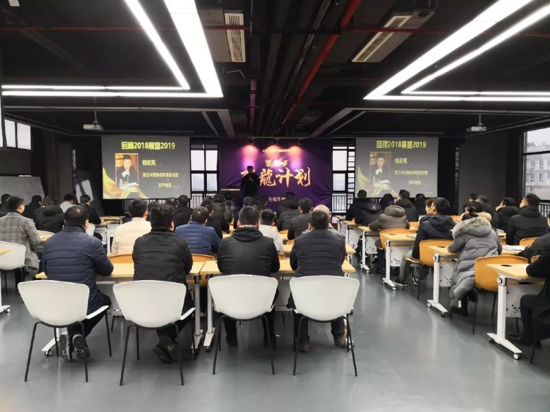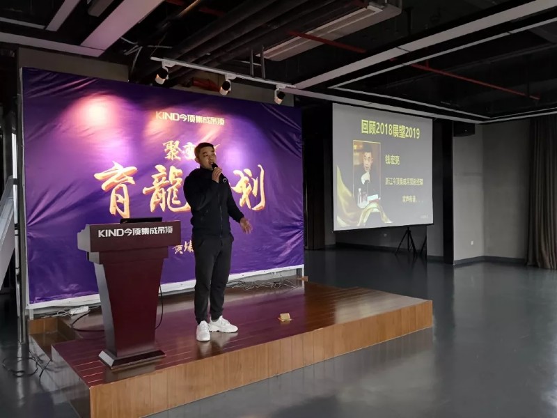 在会议上,浙江今顶集成吊顶总经理钱宏亮先是回顾了营销中心2018年的的工作,又展望了2019,给大家指明了方向。