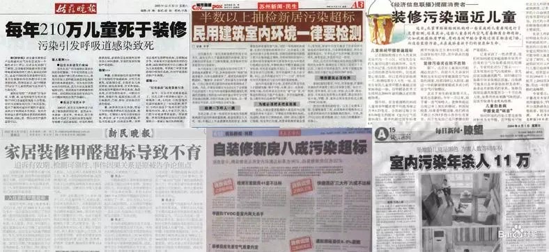 此前,媒体曝光的“家庭装修导致甲醛超标”案例不胜枚举: